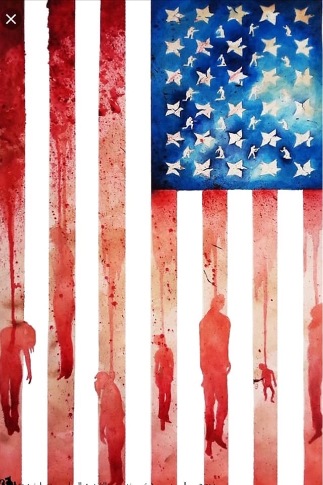 This is the last day of Black History Month. Patrick Campbell’s image of the American flag is brutal. It’s a hard truth. Yet one to be dealt with. Looked at without blinking. African Americans flinch, but we don’t get to blink. Lynching is the forgotten legacy that lives within our DNA.